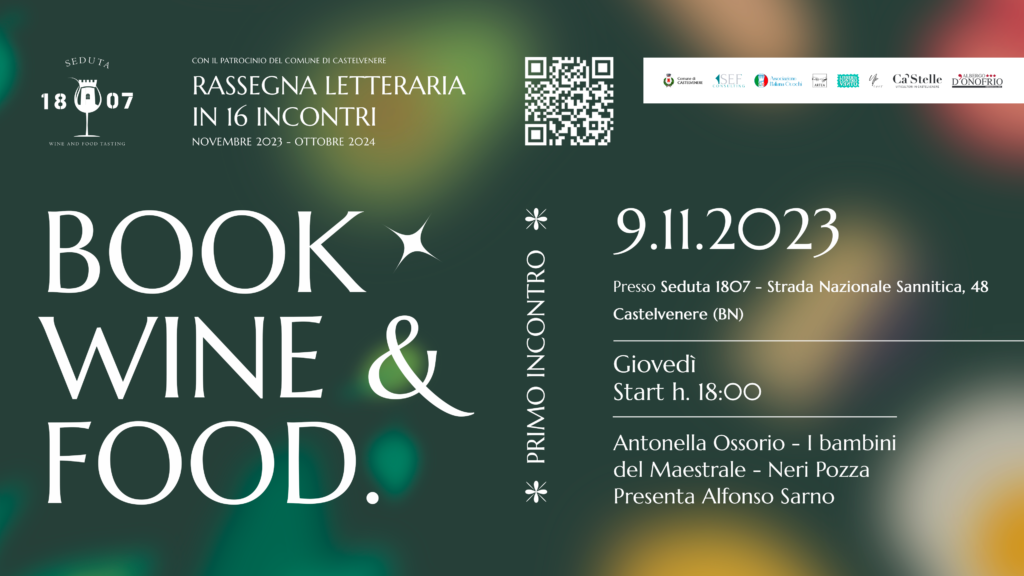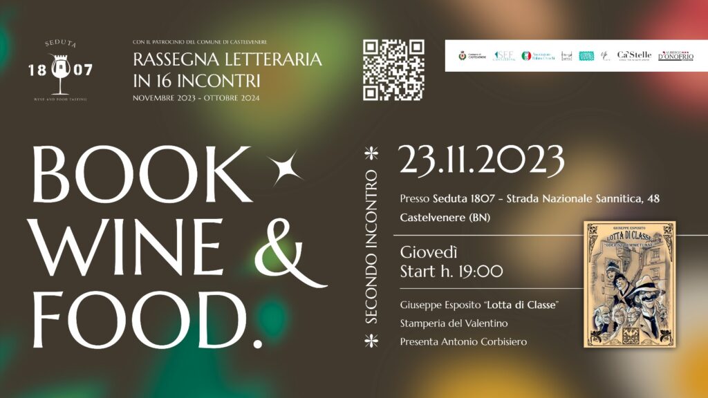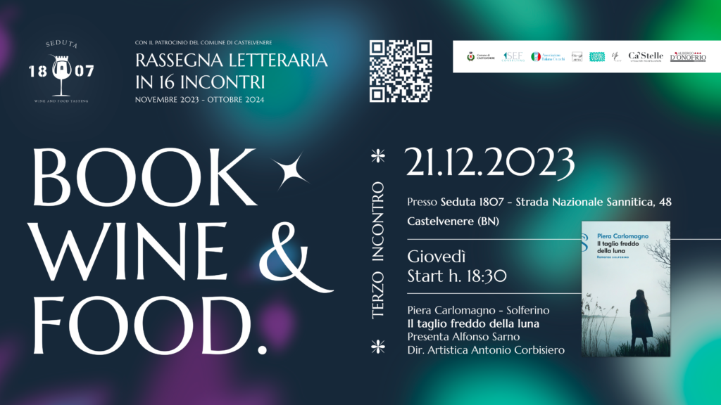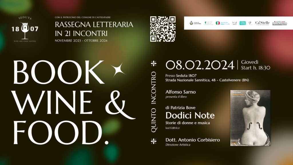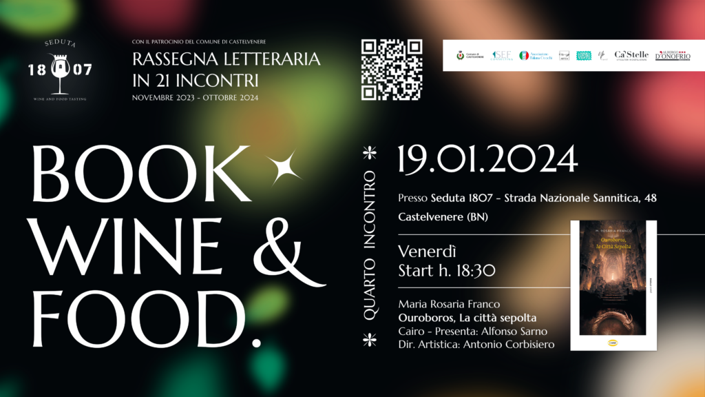 23 Febbraio 2024, ore 18:30 – Seduta 1807, Castelvenere La rassegna letteraria “Book, Wine and Food” è entusiasta di annunciare il suo sesto appuntamento, una